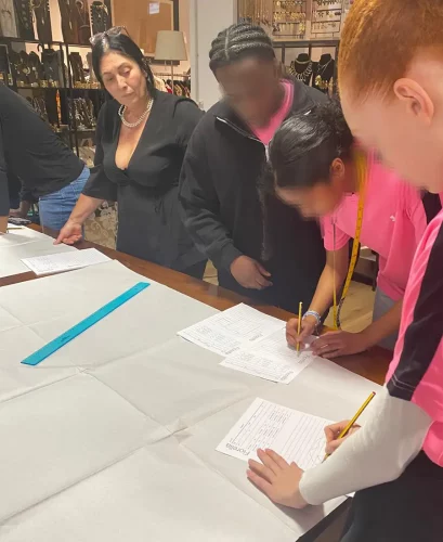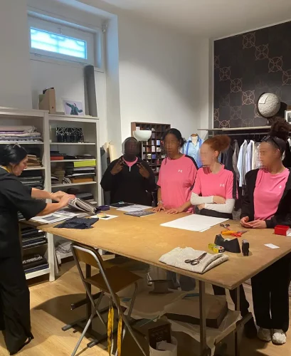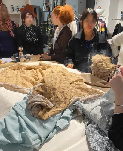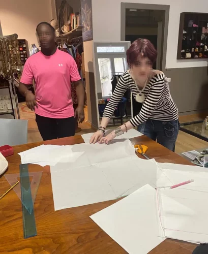 Avant de commencer leur stage PFMP en entreprise, les élèves ont eu l’opportunité de participer à un atelier « mode & design » dans une maison renommée de la haute couture italienne, la Maison Fiorella Ciaboco. Les élèves découvrent les matières, styles et techniques de travail utilisés par cette maison de couture.