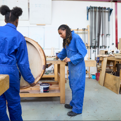 Au lycée Frédéric Bartholdi à Saint-Denis, les élèves de CAP ébénisterie Mélissa et Safia travaillent à la restauration d’un guéridon d’époque appartenant au ministère de la Transition écologique. Ce projet…